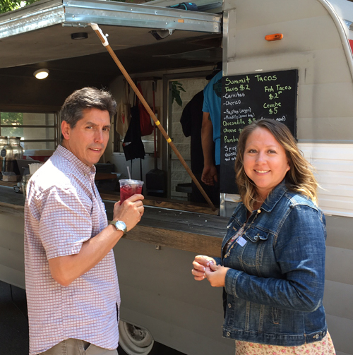 Mike with Jona Charette, First Nations Development Officer, at the “taco truck” during a staff meeting in 2017.