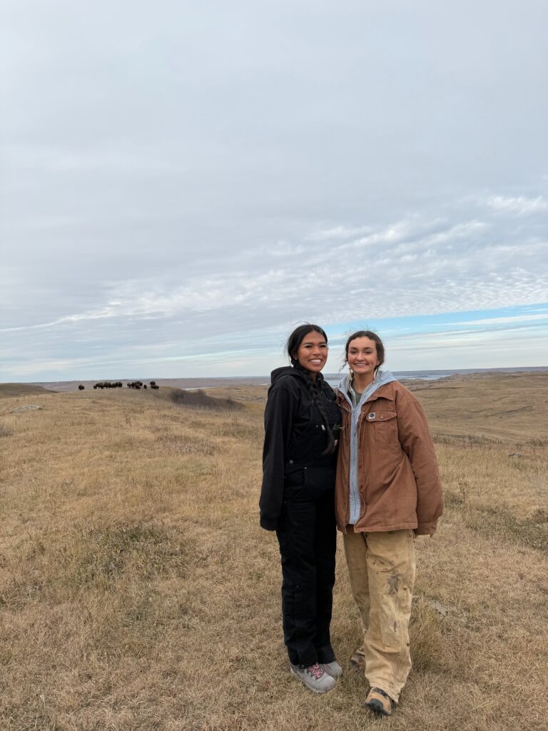 In November 2025, First Nations’ Native Agriculture and Food Systems Investments program sponsored the first-ever Young Women’s Buffalo Harvest at the DuBray Buffalo Ranch in Mobridge, South Dakota, in partnership with Codie Horse-Topetchy (Kiowa, Comanche, and Otoe-Missouria) and Elsie DuBray (Cheyenne River Lakxóta Nation).