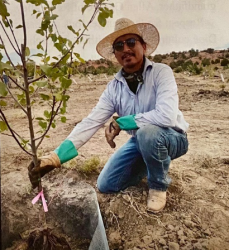 Navajo farmer Ed Miles Harvey, of Chinle, Arizona, is one of the 13 community partners receiving financial and technical assistance through the project. His work planting fruit and cottonwood trees is advancing business relationships and food safety for his tribe. See the full list of partners below.