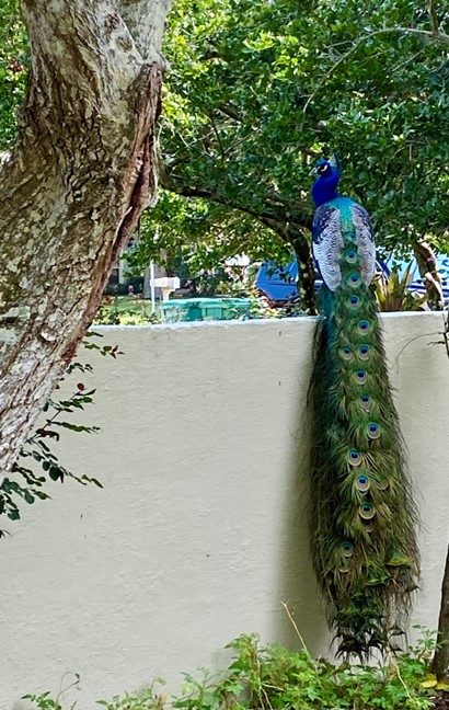 Even the wildlife is impressed. Occasionally, the resident peacock known to the neighborhood as “Big Blue” will fly in for a stroll.