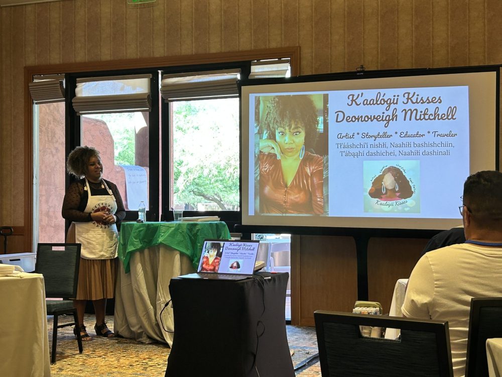 Guest speaker Deonoveigh Mitchell (Navajo) talks to the NFCoP participants about the importance of storytelling in fundraising.